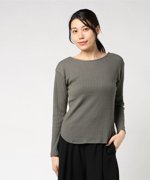 浅めのボートネックが、首元から顔まわりをすっきりと見せてくれるプルオーバー。 ワイドリブが縦感を強調することで、シルエットをスマートな印象にまとめてくれます。 丸みのある裾デザインが女性らしい印象をプラスし、アウトスタイルもこなれた印象に決まるアイテムです。