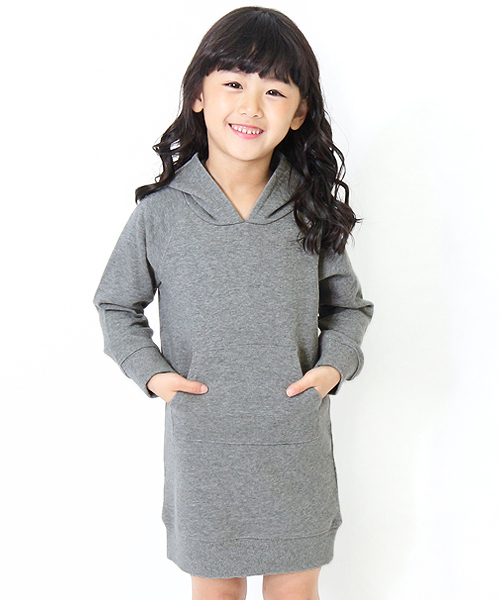 ボリュームのあるフードがかわいい、『無地スウェットワンピース』。 なんといってもポイントは生地を二枚仕立てにしたフード♪ ボリューム感が首周りに出るので360°かわいいシルエットに。 シンプル&ベーシックなアイテムだからこそディティールにこだわりました。 程よくゆったりしたシルエットでレイヤードスタイルもオススメです。 綿100%だから肌触り・通気性の良いさらっとした着心地で 汗の吸収・発散性に優れており型崩れしにくいところも◎ シリーズでパーカーもありますよ。 キッズからジュニアまでをカバーする100cm~160cmまでの豊富なサイズ展開になっています。 ■ディティール■ 伸縮性:あり ・便利なお名前タグ付き