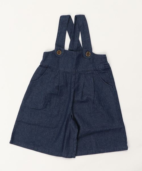 トレンドのいいとこ取り! きれいシルエットのデニムサロペットガウチョ デニムガウチョをサロペット仕立てで。 トレンドをバランスよく取り入れ、 どことなくリラックス感のある こなれた表情の一枚になりました。 少しハイウエストな切替から ゆったりと優雅なシルエットを描くワイドパンツ。 ほどよい薄さのデニムなので、 真冬以外のオールシーズン、 さらりと着て軽快な足さばきが楽しめます。 アンティーク調ボタンがワンポイントアクセントに。 ウエスト背面は幅広ゴム仕様です。 シンプルにTシャツやロンTと合わせて こなれ感漂うカジュアルコーディネイトを楽しんで! こんなシーンに:通園・通学、お散歩、お買い物やお出かけなどのデイリーシーンに。 サイズ感:普通。大きめサイズでも違和感なく着られるデザインです。 伸縮性:なし 生地の厚み:普通 透け感:なし ポケット:あり 裏地:なし ※商品の素材や色合いなど、生産時期によって差異が生じます。