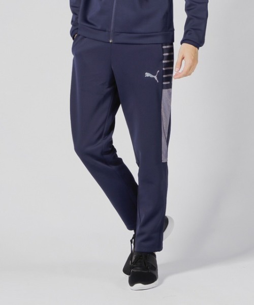 動きやすいカッティングでパフォーマンスを向上させるトレーニングパンツ。 両脇のメッシュ切替えの奥にPUMAのロゴがさりげなくアピール。 吸汗速乾機能。左腿のキャットプリントは、見え方によっていろいろな色に変化します。