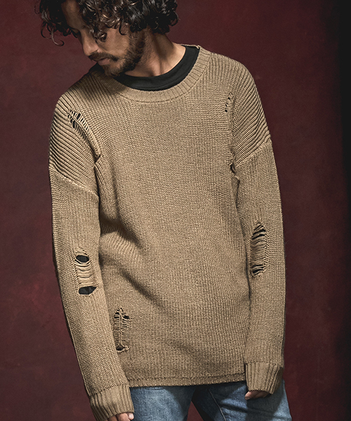181cm 66kgのモデルがMサイズを着用 各所にクラッシュ加工を施したウール混ニット。 オーバーサイズでゆったりとしたシルエット。 肌触り滑らかで柔らかい糸でリラックス感を演出。 ビッグシルエット/ オーバーサイズ ※着用画像と商品単体画像で色が異なる場合がございます。 ※商品単体画像を実物により近づけております。