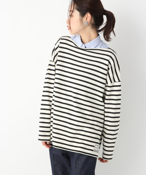 WEAR THE PHILOSOPHY ×apart by lowrys コラボアイテム シーズンレスで使えるボーダーT。 じっくり時間をかけたエアータンブラー加工で上質な膨らみとソフトなタッチが実現した天竺素材で仕立てた1着。 メンズのボートネックTシャツをベースに、女の子が着てちょっと大きいめのサイズ感は、柔らかい素材のスカートや、いつものデニムとも相性◎ 長く着られる、お気に入りのカジュアルアイテムになりそう。 WEAR THE PHILOSOPHY(ウエアーザフィロソフィー) ヨーロピアンカジュアル、スポーツシックを根幹に据えた服作りが特徴の日本のカジュアルブランド。 “10年着られる至高のベーシック”素材にこだわり造りだされました。