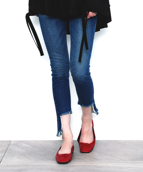 【JANE SMITH(ジェーンスミス)】 ジェーンスミスのスキニーデニムが登場! カットオフデザインがポイントのデニム。 すっきりとしたスキニーのシルエットが大人カジュアルに着こなせます! ヒールとも相性抜群です。 【JANE SMITH】架空の左利き人物 JOHN MASON SMITH、 JANE SMITH に向けたシグネイチャーレーベル。 ヴィンテージ、ワーク、ミリタリーのディテール、素材、縫製を可能な限り継承しながら現代的なシルエット、デザインを取り入れ、懐古主義ではないリベラルな物作りを目指しています。 JANE SMITH 2018 AUTUMN WINTER EXHIBITION. 「RIOT CITY BLUES」PRIMAL SCREAM 2006年 前作のエレクトロな流れから一変しオーガニックな英国ロックに振り切った同名のアルバムをテーマにヒョウ柄、ドット柄のシャツにジャケットやコートスタイルのボビー・ギレスピー(Vo)にフォーカスしたコレクション。英国素材のチェックやストライプを打ち込みが良く脱脂した別注ウール素材をジャケット、パンツ、チェスターコートに落とし込んでいます。インナーにはヒョウ柄、ドット柄をやわらかいシャツ素材にプリントを施し、毛足のながいフリース、ボア、アーガイルモヘアやフェアアイルニットを重ね、クラシックなトレンチや光沢のあるエナメルムートンをレイヤリング。アーミーキルト(リップストップ)、ダウン(ナイロン)でスポーティさをアクセントに取り入れたコレクションに仕上がっています。