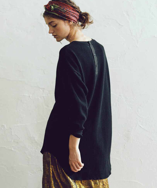 デイリーに使いたい綿100%の快適サーマル ゆったりめのドロップショルダーや、腰まわりが気にならない後ろ長な丈。ミリタリーアイテムとしての起源を持つサーマル素材の丈夫さや機能性を享受しつつ、デイリーに使える女性らしいデザインに。背中のボタン開きが後ろ姿のアクセント。