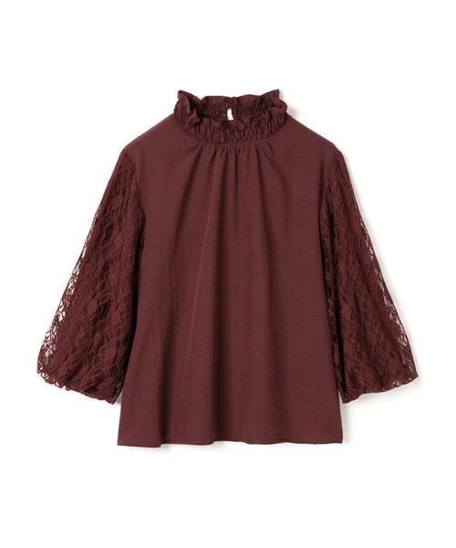 繊細な花柄レースで仕立てたボリュームスリーブに視線が集まるブラウス。 シャーリングハイネックがロマンティックムードをアシスト。 コーディネートに取り入れやすいワンカラーボディもお気に入り。 ちょうどいい丈感だから、ボトムにインでもアウトでもバランスの良く決まる。 ハイウエストスタイルやレイヤードのインナーにもオススメのアイテム。 ★レース部分は裁断の関係で、柄の出方が写真と多少異なる場合があります。