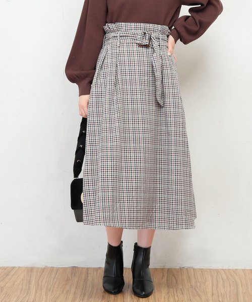 【2018AW natural couture】 今季マストなチェック柄スカート 今季大注目のチェック柄スカートに新作が登場です。お洒落なべっ甲ベルトが付いており、トップスをインした際にアクセントになります。膝下のロング丈に、ウエストから裾にかけてボリュームの出過ぎない絶妙なフレアシルエットとなっており、大人の女性にもぴったりな1着です。後ろウエスト部分はゴム仕様となっており、着脱も楽ちんで◎カラーによって異なるチェック柄を使用しており、落ち着いた大人っぽさとキャッチーで映える2デザインは、どちらも欲しくなっちゃいます!