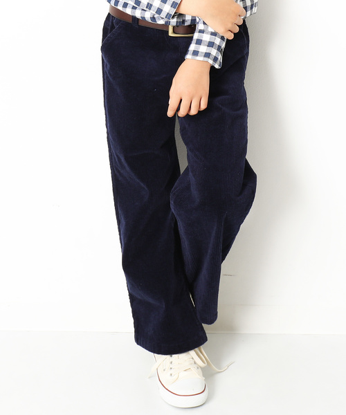 ほどよくゆったりな美シルエット、『コーデュロイワイドパンツ』。 1枚でトレンドルックが完成するコーデュロイパンツ。 季節感のあるコーデュロイを使用し温かみのある装いに。 ほどよく厚みのある生地で、ストレッチも効いているので履き心地バツグンです。 キッズからジュニアまでをカバーする100cm~160cmまでの豊富なサイズ展開になっています。 ■ディティール■ 伸縮性:あり ・ウエストはゴムで楽ちん♪ゴム取替口あり ・便利なお名前タグ付き ・両サイドにポケット付き