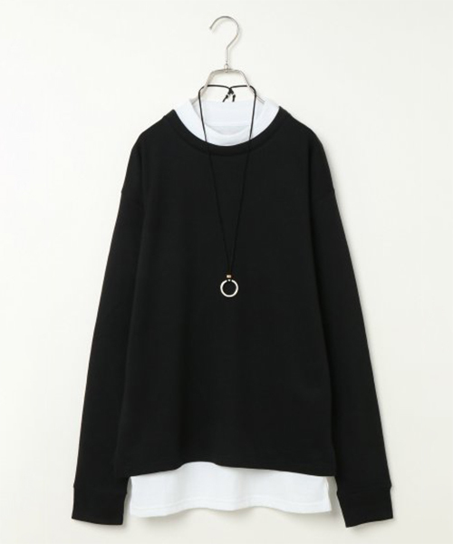 通常の裏毛よりも厚みが少ないミニ裏毛のシンプルなプルオーバーに、モックネックのインナーを付けたセットアイテム!中に着るものを考えずにそのままコーデが完成する上、首元&裾から丁度よくインナーが覗くバランス感も秀逸!さらに、着こなしの味付けにマストなネックレス付きと、お得&スペシャルな一枚となっております![クリーニング]洗濯機洗い可(非常に弱く)ウェットクリーニング(W)