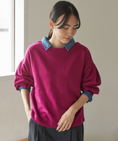 ドロップショルダーのややゆったりとしたシルエットが、こなれ感のあるルックスを叶える裏毛プルオーバー。スリーブはタックをあしらったふっくらフォルムで、トレンドの袖コンシャスに仕上げました。 一枚で着るのはもちろん、フリルハイネックブラウスをレイヤードしたフェミニンスタイルも今季のお勧めです。