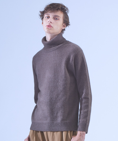 新素材を使用したタートルネックニット 【素材】ヤク、チャイニーズラクーン、カシミアを混紡した軽くて柔らかく、保湿栄にも優れた新しい素材です。 ストレッチ糸混で着心地にも拘っています。 【デザイン】 温かみのあるタートルネックは、上品に見えるようにゲージを変えています。 太めのリブが、より秋冬感のあるニットに仕上げています。 【コーディネート】 グレンチェック柄のパンツやワイドパンツと合わせれば秋冬トレンドコーデの完成。 チェスターコートやオーバーコートのインナーとしてもオススメです。