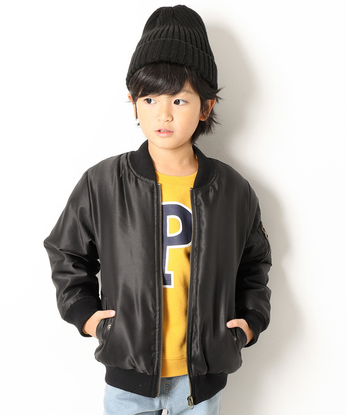 とことんシンプルに、とことん大人っぽく『MA-1ジャケット』 中綿入りでボリューム感のあるオーソドックスなMA-1。 「子供らしくないアウター」をテーマに無駄なデザインを省き、極力シンプルに仕上げました。 身頃には見た目も着心地も暖かなボア素材を採用し保温性を確保。防寒性にも優れた高級感のある1枚です。 表面に撥水加工が施されており、水を透過しにくくなっております。 ファイバーダウンを使用しているので、通常の中綿よりも軽量で保湿性が高いです。 キッズからジュニアまでをカバーする100cm~160cmまでの豊富なサイズ展開になっています。 ■ディティール■ 伸縮性:なし ・表地は光沢感のある滑らかなナイロンを使用 ・身頃には暖かなボア素材を使用 ・左腕に飾りポケット付き ・オリジナルのネームタグ ・ファスナーはアンティークゴールド ・袖部分はボアなしの仕様 ・両側ポケット付きで機能性抜群