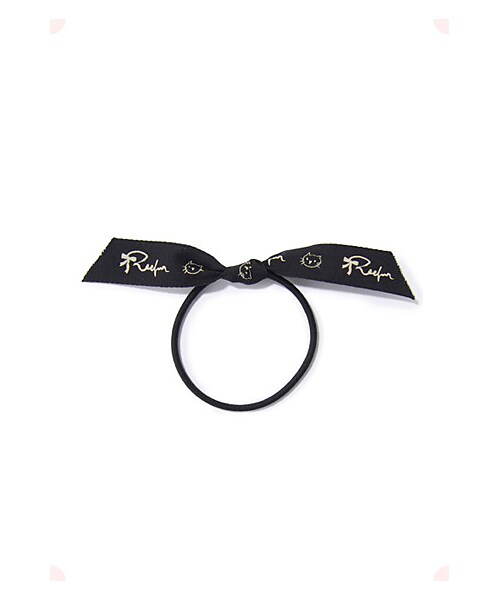 コットン素材のリボンにかわいい猫のイラストとReefurのブランドロゴがプリントされたヘアゴム。細めのリボンなので、さりげなくつけやすいサイズです。