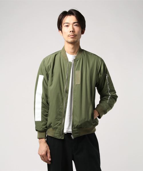 ☆CORISCO☆ ポリツイル中綿袖プリントMA-1☆軽量でヴィンテージ感を演出できる丈夫なポリツイルを使用したMA-1。中綿は軽量かつ保温性があり、袖にはストリート感を演出するプリントが入っています。 定番アイテムにストリートやスポーツをMIXしており、今年のスタイルにもってこいのアイテム。