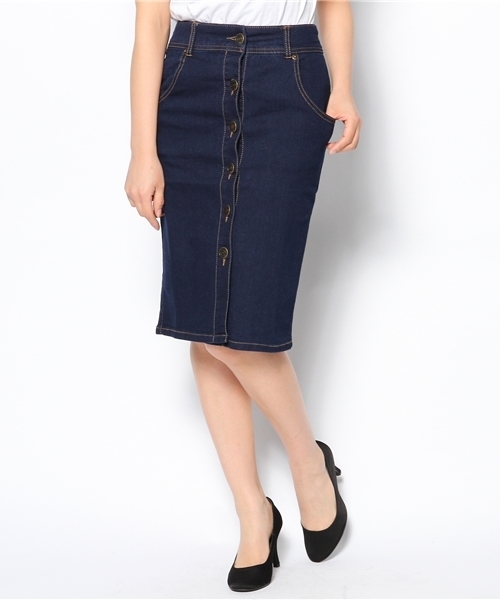 柔らかなデニム素材で仕上げたタイトスカート。ボディラインに沿うようなタイトなシルエットが女性らしい仕上がり。今季人気のハイウエスト仕様で、トップスをインした際に綺麗にみえるウエスト周りのシルエットが女性らしい印象のひと品。バックウエストはゴム仕様になっているので、リラックスして快適に着用頂けます。レーストップスやハイネックトップスと合わせるような、女性らしい着こなしも今季オススメです。 店舗にてお問い合わせの際は、下記の品名・品番をお申し付け下さい。 品名:デニム前ボタンタイトスカート 品番:A68BR-2995Y model:H160 B82 W60 H88 着用サイズ:LARGE WEGOの特集ページはコチラ