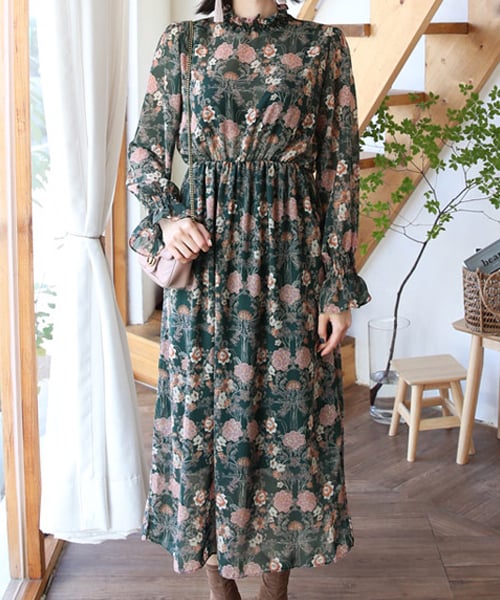 ふんわりシフォンがフェミニン感あふれるフリルネック花柄シフォンワンピース♪ ウエストゴムの位置も高めで脚長効果もバツグン◎着るだけでコーデがキマる華やかな一枚です! ※WEARに記載してある金額と、DHOLIC通販サイトに記載してある金額にシステム都合上、稀に誤差が生じます。正しい金額はDHOLIC通販サイトに記載された金額です。
