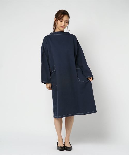 休日のお供にぴったりたっぷりと身幅を持たせた、リラックスフィットのロングスリーブワンピース。やや高めに取られたモックネック仕様の首周りと、両サイドにあしらわれたパッチポケットがデザインの決め手。単体での着用はもちろん、レギンスやデニムをレイヤードして着こなすスタイルもおすすめです。メーカーコード:LFW-84268ROBUR / ロビュール1922年フランス・リヨンにて創業したワークウエアブランド。公共機関や有名ホテルチェーン、三ツ星レストランなどへユニフォームを提供し続けています。ジャン・レノ主演の映画「シェフ」に衣装提供したことでも有名です。