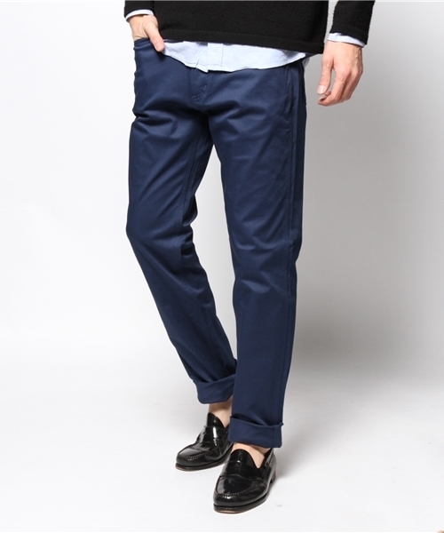 JOURNAL STANDARDのパンツ しっかりとしたハリと程よい光沢感のあるウエポン生地を使用した5ポケットパンツ。 フルレングス仕様となっていますが、裾の裏地部分に別生地を貼っている為、気候や気分に合わせて裾を数回捲り上げれるロールアップ仕様が特徴。 スッキリとしたシルエットにストレッチ素材の機能性が魅力で様々なスタイリングにご使用頂けるデザインアイテムです。 店舗へは下記品番でお問い合わせ下さい。 品番:14030600801010 model:H180 B82 W71 H86 着用サイズ:MEDIUM ブルー系その他 model:H180 B82 W71 H86 着用サイズ:MEDIUM ネイビー model:H182 B90 W71 H93 着用サイズ:LARGE