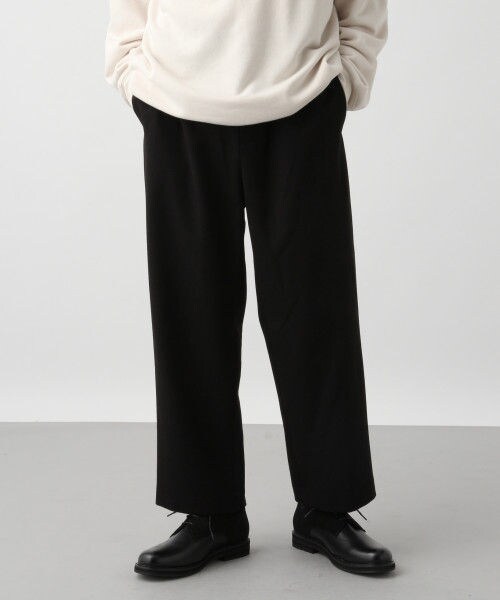 リラックスして履けるきれい目イージーパンツ。やや厚手のもっちりとした生地を起毛させた季節感のあるアイテム。ウエストはドローコードで絞れるようにしたイージー仕様のアイテムです。ミドルワイドのストレートシルエットは使い勝手もよく、着回し力も抜群です。同素材のテーラードジャケット(807833)を使用したセットアップコーデもおすすめです