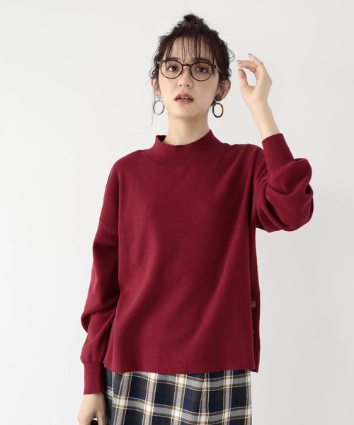 サイドについている釦がスタイリッシュな、ニットプルオーバー。ふわふわとやわらかな肌触りで着心地も良く、気負いなくスタイリングできるのも嬉しいポイントです。しっかり首元が覆われていて、これからの季節に防寒効果も期待できます。