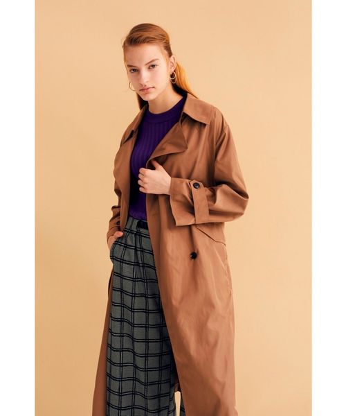 オーバーサイズシルエットが今年らしいトレンチコート。形状記憶素材の高密度ポリエステルを使用しており、シャリ感のある素材がきれいめからカジュアルまで着こなしの幅を広げてくれます。共布サッシュベルトでウエストマークするとおしゃれに決まり、丈の長いボトムとのコーデとも好相性です◎