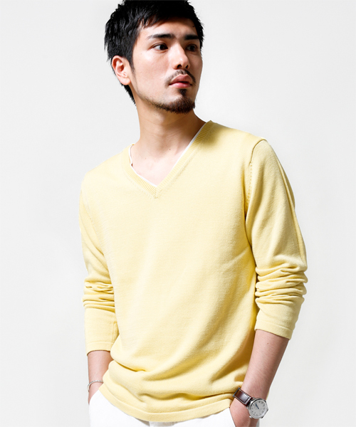 ◆nano・universe◆(ナノ・ユニバース) 『快適な着心地のハイブリットニット』 快適な着心地の秘密は、ニットの2重構造にあります。 肌に触れる側には速乾性の高い機能糸を、表面側には落ち感のあるスリーミックスコットンを使うことで、通気性が良く、素肌でも着れるような柔らかい着心地を実現しました。 着回しやすいベーシックなデザイン 程よく首元の開いたシンプルなVネックのデザインは、中にカットソーを合わせ、首元はアクセサリーで遊んでみたり、シャツで少し上品にまとめてみたり、と様々な着こなしが可能です。 また、どんなアウターとも相性が良いので1枚持っていると非常に重宝します。 季節感のある豊富なカラーバリエーション カラー展開は全6色でベーシックな色から、春らしい明るい色まで豊富なラインナップ。 コーディネートの差し色にもピッタリですので、色違いで持っていても必ず使えるオススメのアイテムです。 model PATRICIO:H181 B90 W74 H94 着用サイズ:MEDIUM(ライトグリーン/ネイビー) nano・universe model:H178 B81 W71 H88 着用サイズ:MEDIUM(ブラック/ロイヤルブルー/イエロー/ピンク) ※画像の商品はサンプルです。 実際の商品と仕様、加工、サイズが若干異なる場合がございます。 【新税率に関するお知らせ】 商品の発送が2014年4月1日以降となった場合には、決済金額を新税率に基づいた金額に変更し請求させていただきます。