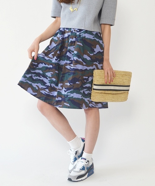 チェック柄×カモフラ柄が目を惹く、存在感抜群のスカート。膝丈のフレアなシルエットがレディ度をUP☆シンプルなトップスをサラリと合わせるだけでこなれた雰囲気に仕上がるオススメのアイテムです。 ※汗や雨などで湿った状態、または摩擦により他のものへ色が移ることがあります。淡色衣料との組み合わせは避けてください。洗濯時、長時間の浸け置きは避け、必ず単独で洗濯してください。※末永く愛用頂く為に、アテンションタグ・洗濯ネームを必ずご確認の上、着用又はお取り扱い下さい SHIPS各店へは下記品番にてお問合せください。型番:323-20-0057 model:身長162cm 着用サイズ:ONE SIZE ※画像の商品はサンプルです。 実際の商品と仕様、加工、サイズが若干異なる場合がございます。