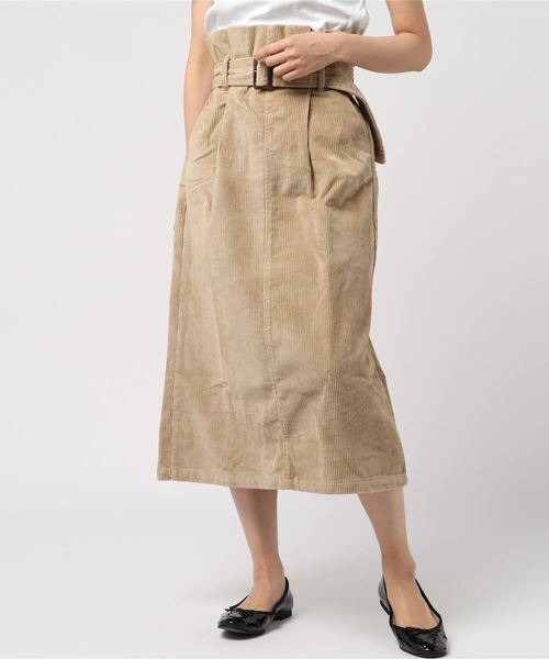 トップスインにぴったりなデザインのフレアスカート☆生地感がポイントのコーデュロイ素材を使用!季節感あふれる仕上がりになっています♪