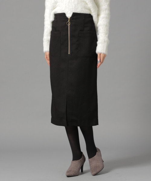 オンにもオフにも着回し力抜群な、タイトスカートです。ハーフジップとポケットがデザインポイントで、シンプル過ぎず◎合わせるだいけで、スッキリスタイリングがまとまります。