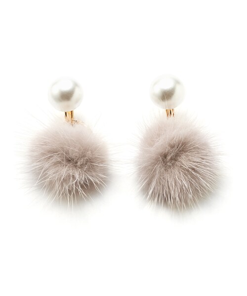 ふわふわのミンクファーとパールを組み合わせたフェミニンなイヤリング。 ゴールドのリングを間に挟んで、スパイスをプラス。 つけるだけでシーズンムードを盛り上げてくれる、今季見逃せないアイテム。 ★素材の特性上、カラーが、写真と多少異なる場合があります。 ★金属アレルギーの原因となるニッケルをほぼ含まず、アレルギーの方にも安心なニッケルフリー加工でお肌に優しい素材 です。