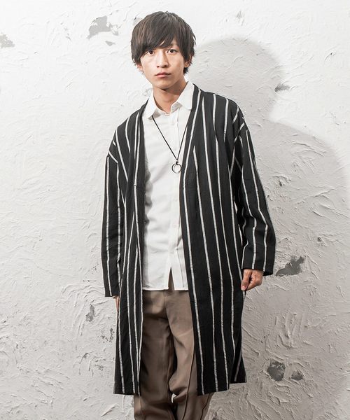 新作【ビッグシルエットストライプノーカラーガウン】上品なヌケ感を演出するノーカラーガウンの登場。ビッグシルエットと膝下までの丈感でサイジングすることで、絶妙なゆるさを作り出す、こだわり抜いたフォルムに。襟元のノーカラーがTシャツはもちろん、シャツとの相性も良くアイテムを選ばない取り入れやすいデザインに仕上がっております。素材には、肌に優しいコットン100%を使用しており肌に馴染む柔らかな風合いをお楽しみいただけます。■生地の伸縮性 ・・・ 伸縮しません■生地の透け感 ・・・ やや透けます■生地の厚み ・・・ 標準です■裏地の有無 ・・・ 無し=============================【お買い物をもっと便利に楽しく♪】■商品のお気に入り登録をすると・・・完売カラー・サイズの再入荷通知や、ラスト1点の通知、お得なセール情報も受け取ることができます!■ブランドのお気に入り登録をすると・・・新商品や再入荷のお知らせなどいち早くブランドの最新情報を受け取ることができますのでご登録をオススメします!