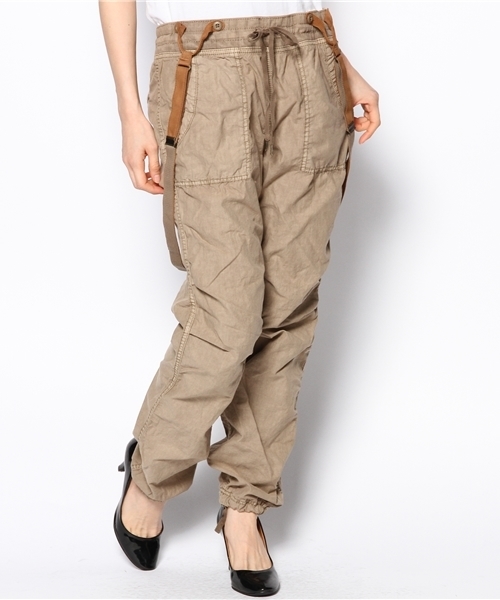 ちょっぴり辛口なコーディネートを完成させるカーゴパンツ! ボーイズライクなカーゴパンツを女性らしいシルエットに仕上げました。 スタイルに合わせたアレンジが楽しめる、サスペンダー付きも嬉しいポイント。 model:H160 B76 W60 H82 着用サイズ:FREE