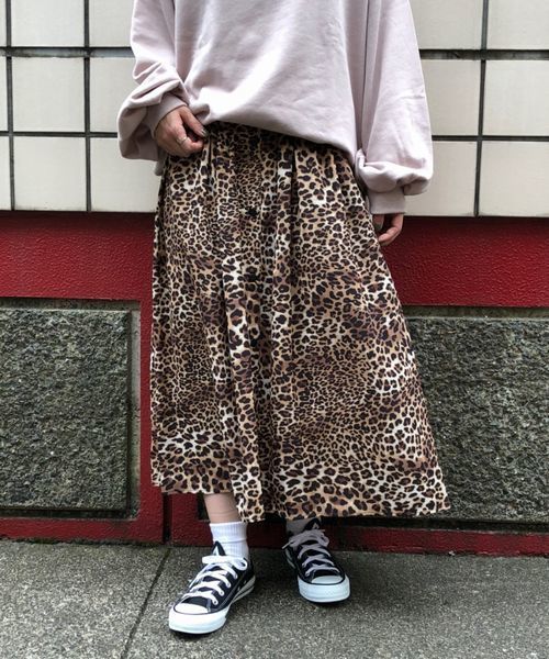◆今季注目のレオパード柄◆ 布帛生地を使用した、軽い履き心地のフレアスカートです。 ウェスト部分がコルセット風のデザインになっているので、トップスインした時に着やせ効果もあるのもポイントです★ フロントにボタンも付いているのでもちろんアウトスタイルも可愛く合わせて頂けます◎ ※実店舗と発売時期が異なることがございます。あらかじめ御了承下さい。 ※撮影場所やお使いのモニター環境により若干お色味が異なる場合がございます。 ※お取り扱いに関しましては、商品に付属のアテンションタグをご覧ください。