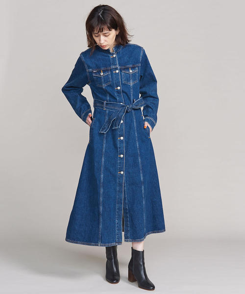 存在感抜群の、ロング丈デニムワンピース。 フロントのポケットやフラップポケット、細部のステッチまでワークテイストを感じさせる一着です。 前開きの仕様ですので、羽織として活用することも可能。 共布のリボンベルトが付属し、アレンジをお楽しみいただけます。 <WON HUNDRED> デザイナーのNikolaj Nielsenが手掛ける2008年にスタートしたデンマーク発ブランド<WON HUNDRED(ウォンハンドレッド)> ★INDIGO製品のお取り扱い注意★ この製品はINDIGO(藍)染めです。他の製品では味わえない自然な色相が生命ですが、着用により他の衣服等に色が付着することがあります。また洗濯により徐々に染料がFADE-OUT(色あせ)します。取り扱いの際は、取り扱い表示をご確認の上、次の点に十分ご注意ください。 ・摩擦により淡い色のベルトやバックに色移りしますのでご注意下さい。 ・下着等は同色系のものを着用されることをおすすめします。 店舗へお問い合わせの際は、全国のBEAUTY & YOUTH各店舗まで下記の品名/品番をお申し付け下さい。 品名:BSC W/H DNM LNG DRS 品番:1626-343-3389