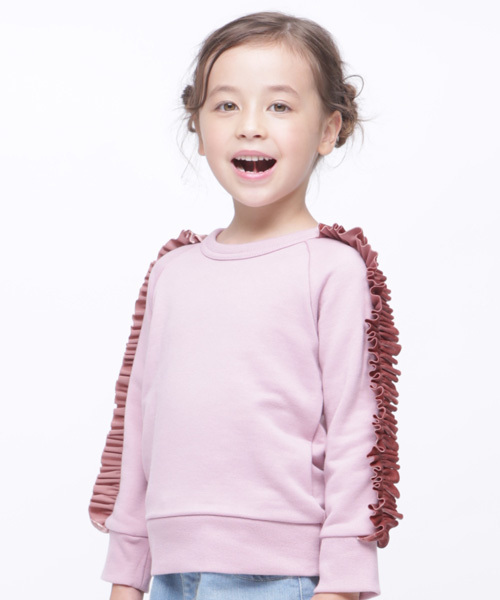 女の子らしさ満点のフリルが魅力。裏側はタオル生地のようなループが特徴です。このループが体温を温かいまま包み込むため保温性に優れている上、吸水性にも富んでいます。