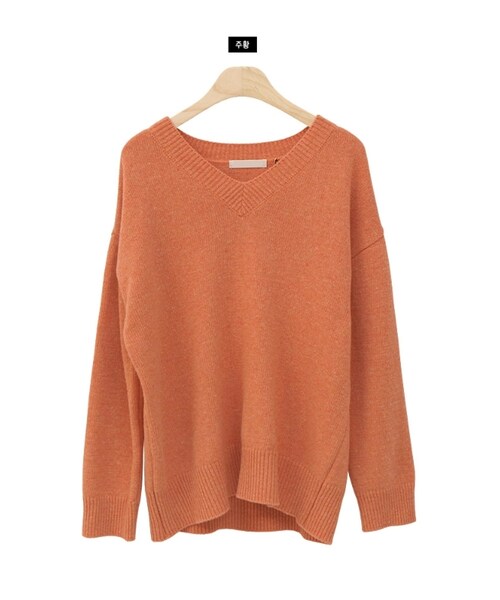 デコルテラインをキレイに見せてくれるVネックニットトップス★ ディテールを省いたシンプルなデザインが幅広いスタイリングにマッチしてくれる万能Item♪ カラバリ豊富で何枚も欲しくなっちゃう一枚です。