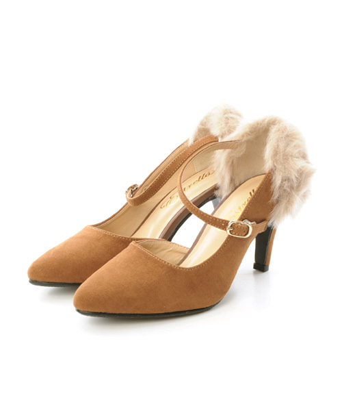 かかとに付いたボリューミーなファーが レディライクな印象のパンプス。 華奢なアンクルストラップは 足くびを綺麗に見せてくれるだけではなく 安定感もプラス。 高すぎないヒールと低反発クッションで 長時間の着用でも疲れにくい仕様です。 パーティシーンや大人なスタイリングに合う 優秀アイテムです。 ◆注意事項 *撮影場所やイメージにより 実際の商品と色味が若干異なる場合がございます。 商品のお色味はカラーバリエーション画像をご参照ください。