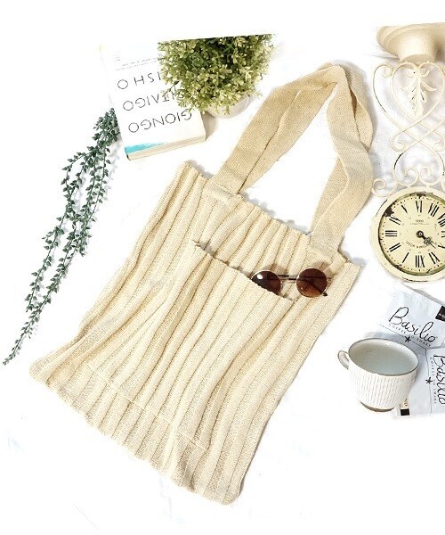 ざっくり太めなリブ編みのニュアンスを存分に味わえる秋冬ニットバッグ。 マチはありませんが、程よくビックサイズで、収納力も◎斜め掛けも可能で、ラフなカジュアルコーデによくマッチします。