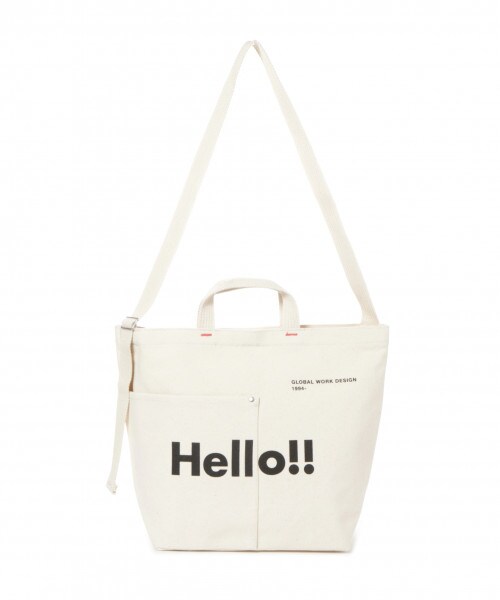 GLOBAL WORKオリジナルLOGOバッグGLOBAL WORKオリジナルのLOGOバッグが登場!斜め掛けできるショルダーと手持ちのハンドルが付いたバッグはショルダーとトート2WAYでお使いいただける万能な1点!シンプルなデザインに使いやすい生成の色合いはスタイリングにも馴染みやすく、LOGOの文字が異なるのでお好きなデザインを♪しっかりとした生地感のバッグは日常のサブバッグはもちろん、ちょっとしたお出かけのお供にもおすすめです!