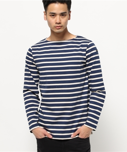 Leminorのボーダーカットソー 【Leminor】: 大西洋に突き出すフランスのブルターニュ地方で1936年に創業。他社が海外生産に移行する中でフランスで生産を続け、今なおフランス海軍に納品を続けています。反物の製作から一貫して自社工場で製作をおこなっており、厳しい品質管理によって高いクオリティを維持し続けている数少ないブランドです。 その中でこちらは定番のバスクシャツ。スペインのバスク地方の船乗が着用していたことを起源とし、首元が船の形に似ていることからボートネックシャツとも呼ばれています。 コシのある目の詰まった生地は耐久性に優れています。それでいて着用するほどに体になじむのは、他では見られないLeminorならではの仕上がりです。 SHIPS各店へは下記品番にてお問合せください。型番:112-01-2062model:H180 B86 W70 H86 着用サイズ:LARGEパープル model:H178 B87 W71 H90 着用サイズ:LARGE