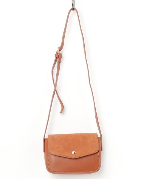 クラシックなデザインが魅力的なシンプルレザーショルダー。フラップ部分がフェイクスエードの異素材になっているのが遊び心溢れるデザイン。小さめのサイズ感が女性らしい。本体はフェイクレザーですので扱いやすさも魅力的。肩紐はお好きな長さに調節可能となっております。使い勝手の良いブラウンとブラックの2色展開です。