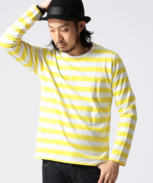 40/2天竺(40双糸)生地を使用した、ボーダーカットソー。細い糸を2本ねじり合わせて使うことで、太い糸を1本で編んだものよりソフトな肌触りが特徴です。太めのボーダーがコーディネートのスパイスとなり、インにもアウトにも活躍すること間違いなし! model:H180 B82 W71 H86 着用サイズ:MEDIUM 店舗へお問い合わせの際は下記品番をお伝えください。品番:11-14-0366-592