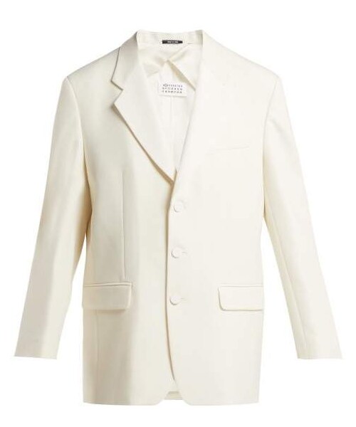 Maison Margiela - Maison Margiela revisits a classic of tailoring with its own modern spin with this cream-white blazer. Crafted from mid-weight wool-blend twill, it's shaped with notch lapels and padded shoulders for a sharp silhouette. Style yours with a matching roll-neck sweater and bright trousers for a thoroughly contemporary stance.