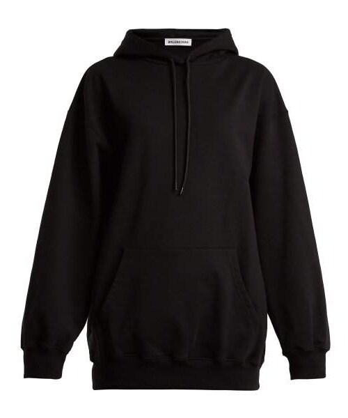 Balenciaga - Tap Balenciaga's streetwise aesthetic with this black cotton-jersey hooded sweatshirt. It's crafted for an oversized shape, that turns to a bold white logo print at the back, and finished with a classic kangaroo pocket and ribbed edges. Style yours with skinny trousers and pointed pumps for a chic, urban result.
