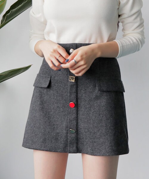 フロント部分のマルチボタンがポイントのミニスカート♪ 両サイドのフェイクポケットもポイントになり、ミニ丈でガーリーさもUP!シンプルなTシャツやブラウスとあわせてバランスの良いコーデに仕上げるのがオススメです★ ※WEARに記載してある金額と、DHOLIC通販サイトに記載してある金額にシステム都合上、稀に誤差が生じます。正しい金額はDHOLIC通販サイトに記載された金額です。
