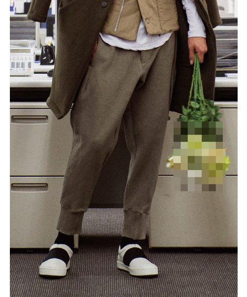 【OURET最大のヒットボトムス】硫化染めで仕上げたスーパーストレッチのドビー織り。しっかりとした肉地ながら、ストレッチ性が強いので、履き心地は抜群です。股上を深めにして十分なゆとりを確保したジョッパーズパンツとの相性も良い。