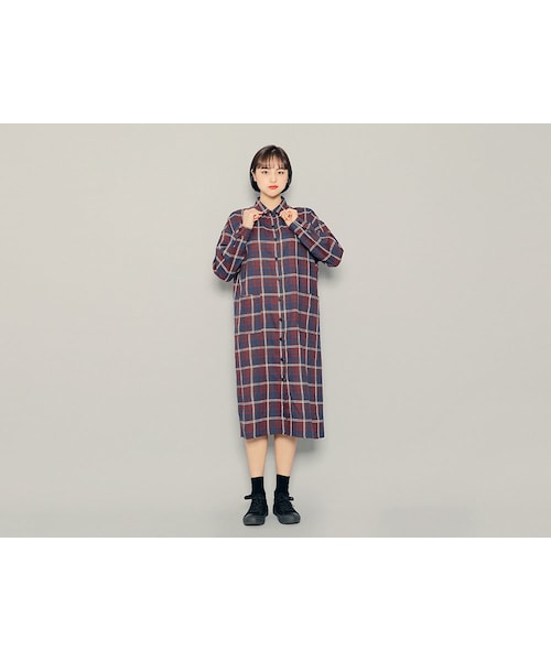 フロントポケットチェックシャツワンピース
