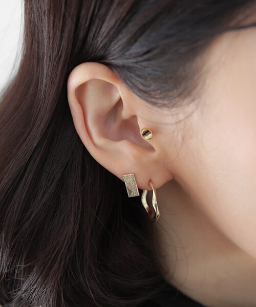 マルチデザインでさまざまなシーンで使える3SETピアス! ウェーブデザインのリングピアス、小さな長方形タイプ、サークルデザインタイプの3タイプ。デイリールックにはもちろんシーンにあわせてお使いいただけるシンプルなデザインで重宝すること間違いナシです! ※WEARに記載してある金額と、DHOLIC通販サイトに記載してある金額にシステム都合上、稀に誤差が生じます。正しい金額はDHOLIC通販サイトに記載された金額です。