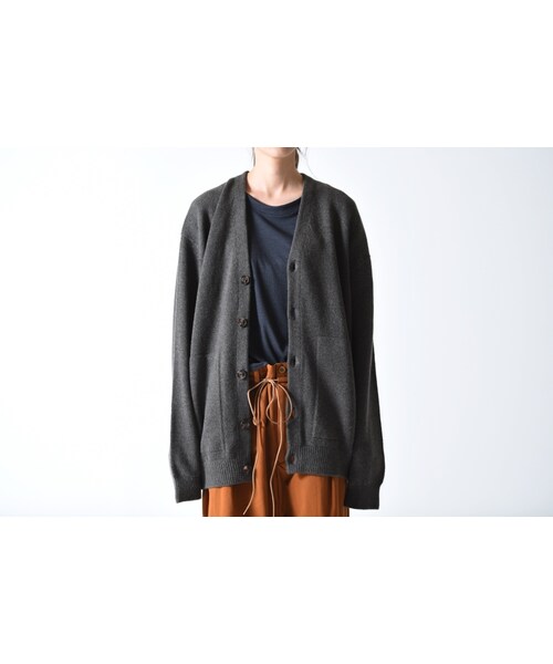 肩とアーム周りのフィニッシュが、とても綺麗に仕上がっているミドルゲージのホールガーメントカーディガン。 裾、袖のリブのテンションは強め、シンプルながらもフィッティングはcrepusculeらしいゆったりとしているところが特徴。 ネックは、深すぎず浅しすぎず絶妙なVライン。 ウール100%の国産ホールガーメントニット。 秋には、カットソーやシャツと合わせて、冬には、アウターとレイヤリングを楽しめる万能な一着。 サイズ感は程よいゆったりシルエット。 ユニセックス展開です。 サイズ2で、ほとんどの男女に着用していただけます。 着用写真のようにサイズ2をオーバーに着用するのも◎