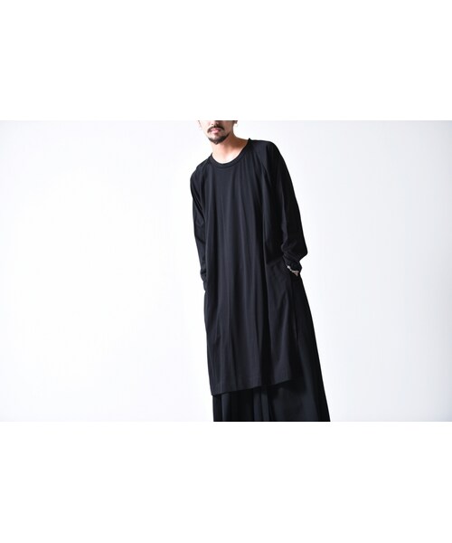 110cmのロング丈と深いスリットが魅力のロングプルオーバー。 1着での着用はもちろん、 写真のようにレイヤードをお楽しみ頂けます。 スリットの長さを活かして前だけインするスタイルもオススメ。 生地には良質なスーピマスムスコットンを使用。 生地表面が非常に滑ら、且つ上品な光沢が特徴の素材です。 また、こちらの生地にはバイオシルケット加工が施されています。 繊維をさわやかに保ち、人体に影響を及ぼさない、肌に優しい加工です。 抗菌・防臭効果があり、洗濯耐久性にも優れています。 快適に長く着用頂く為の嬉しい仕様。 サイズはFREE SIZE。 ほとんどの男性にゆったりと着用頂けるサイズ感。