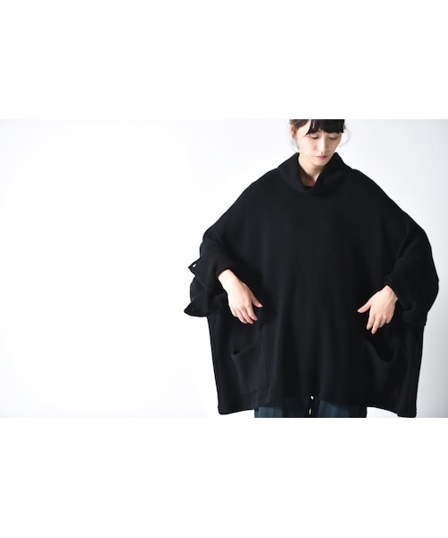 身幅を極端にワイドにデザインしたハイネックニット。 肩は着用した人の身体に沿って落ちるドロップショルダーデザイン。 袖にはスリットを施し、ボタンで開閉可能。 ボタンにはBISHOOLオリジナルの本水牛ボタンを使用しています。 両サイドにはポケットが施されておりますので利便性の面でも◎ 1着での着用はもちろん、 写真のようにレイヤードをお楽しみ頂けます。 生地には温かみのあるニットらしい表情を持ったワッフル調の生地を使用。 落ち感とそれに伴うドレープが美しい素材。 サイズはFREE SIZE。 ほとんどの男性にゆったりと着用頂けるサイズ感。